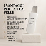 Utilizza vibrazioni ad alta frequenza (fino a 24.000 al minuto) per rimuovere impurità, punti neri e cellule morte senza danneggiare la pelle.